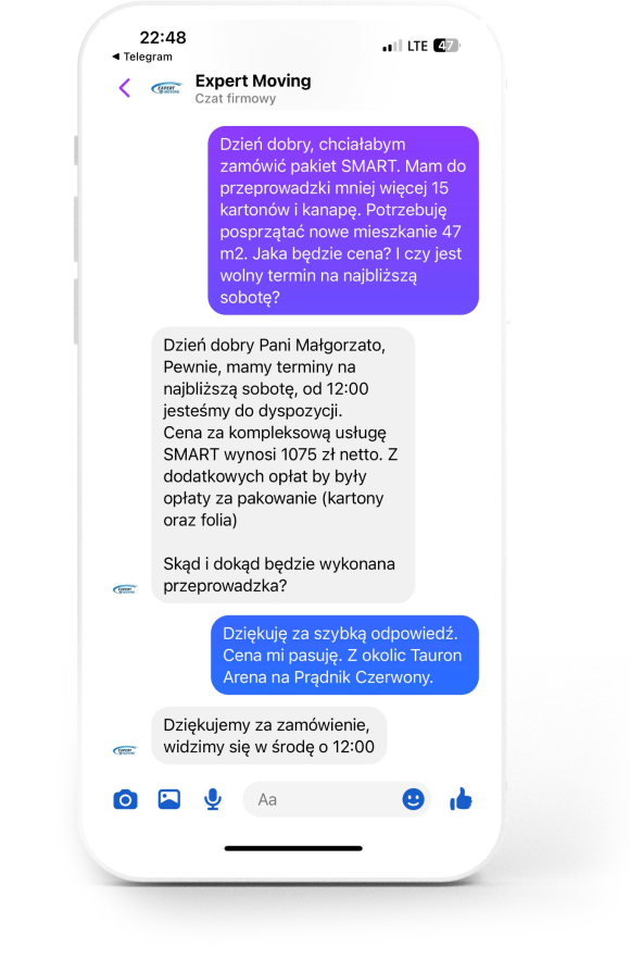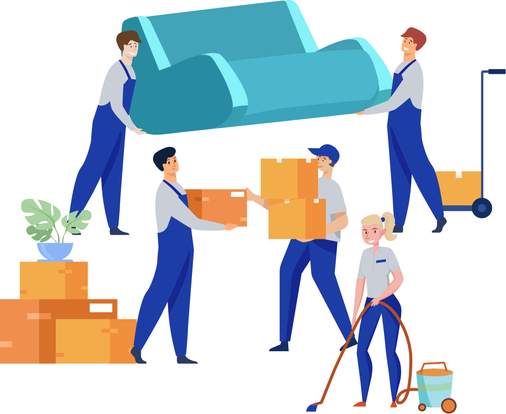Podczas składania zamówienia należy poinformować managera o posiadanych meblach i przybliżonej liczbie rzeczy do przewiezienia, a także o powierzchni mieszkania, która ma zostać posprzątana. Zespoły Expert Cleaning i Expert Moving wchodzą do mieszkania w tym samym czasie, chłopaki pakują rzeczy i meble, a dziewczyny sprzątają. Podczas gdy dziewczyny kończą sprzątanie, chłopaki już skończą przeprowadzkę 🙂